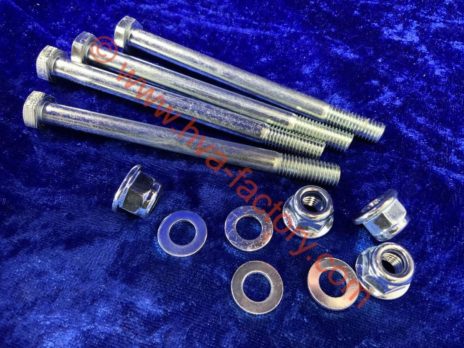 Steel Front Engine Mounting Bolt kit. Nuts and Bolts. 4 x 105mm BZP High Tensile Bolts, Washers and 4 x Flanged Nyloc Nuts. As pictured