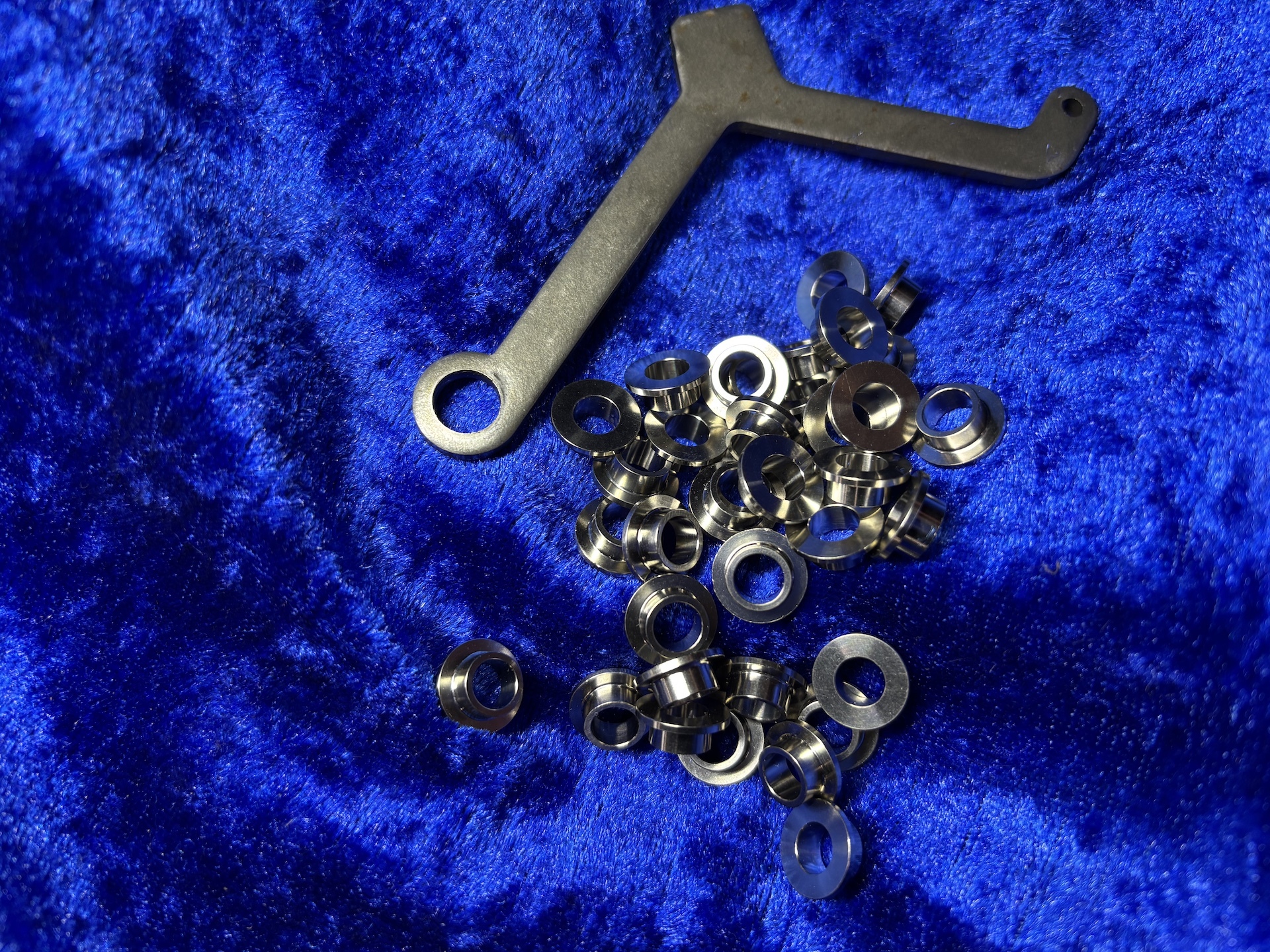 Gear Change Hook Link Pivot Bushing (Upgrade). This Titanium part replaces the washer(151373401) and the Bushing(161121601) To prevent the binding of the hook link that commonly happens!